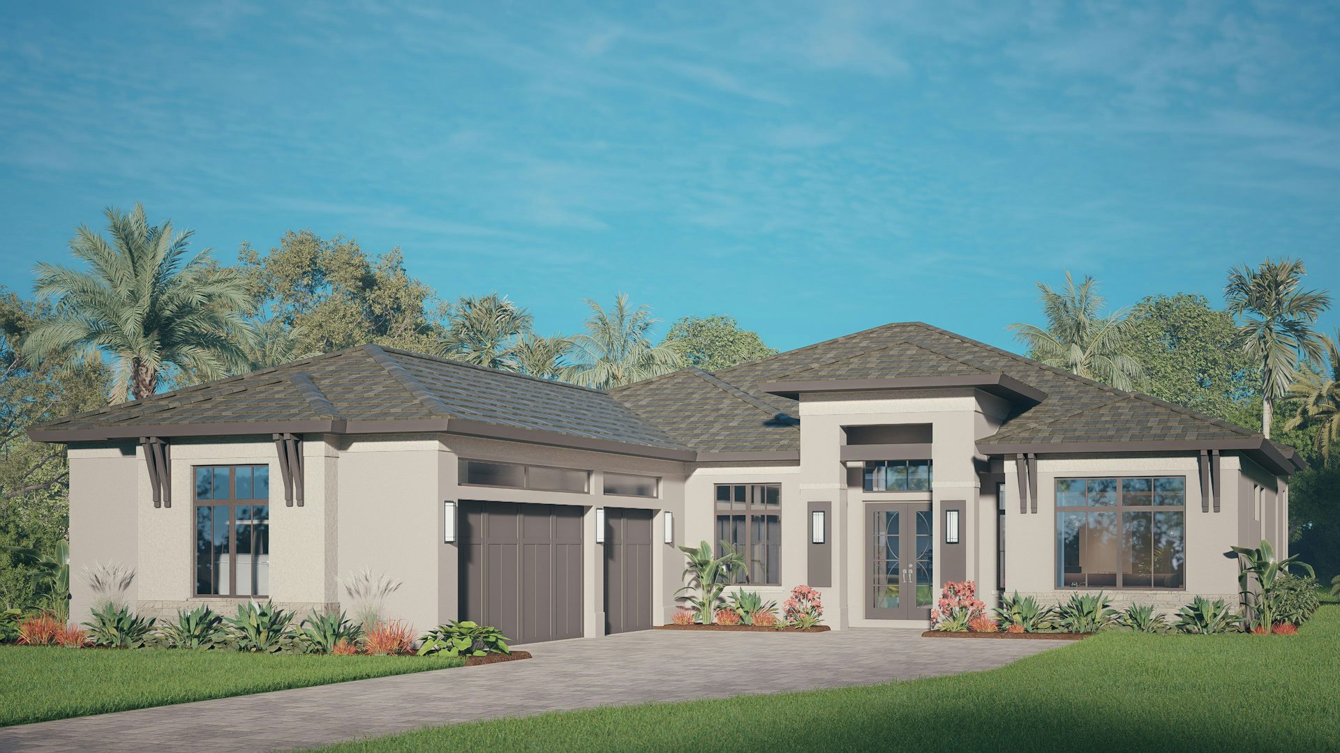 The Artistry floor plan offers 4 bedrooms, 4 bathrooms, club room and den, plus a 3-car garage, all thoughtfully designed across 3,3883 square feet of air-conditioned living space (4,674 total sq. ft.). This home provides a spacious and welcoming open concept with an island kitchen middle, a dining area and great room that open to the lanai with expansive sliders to the lanai creating a seamless clow for indoor-outdoor living.