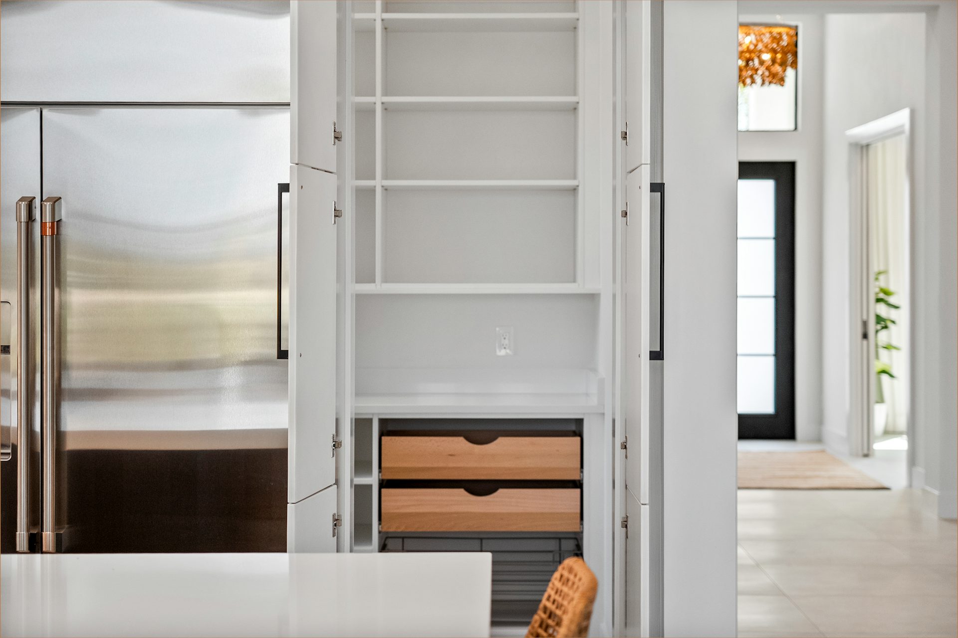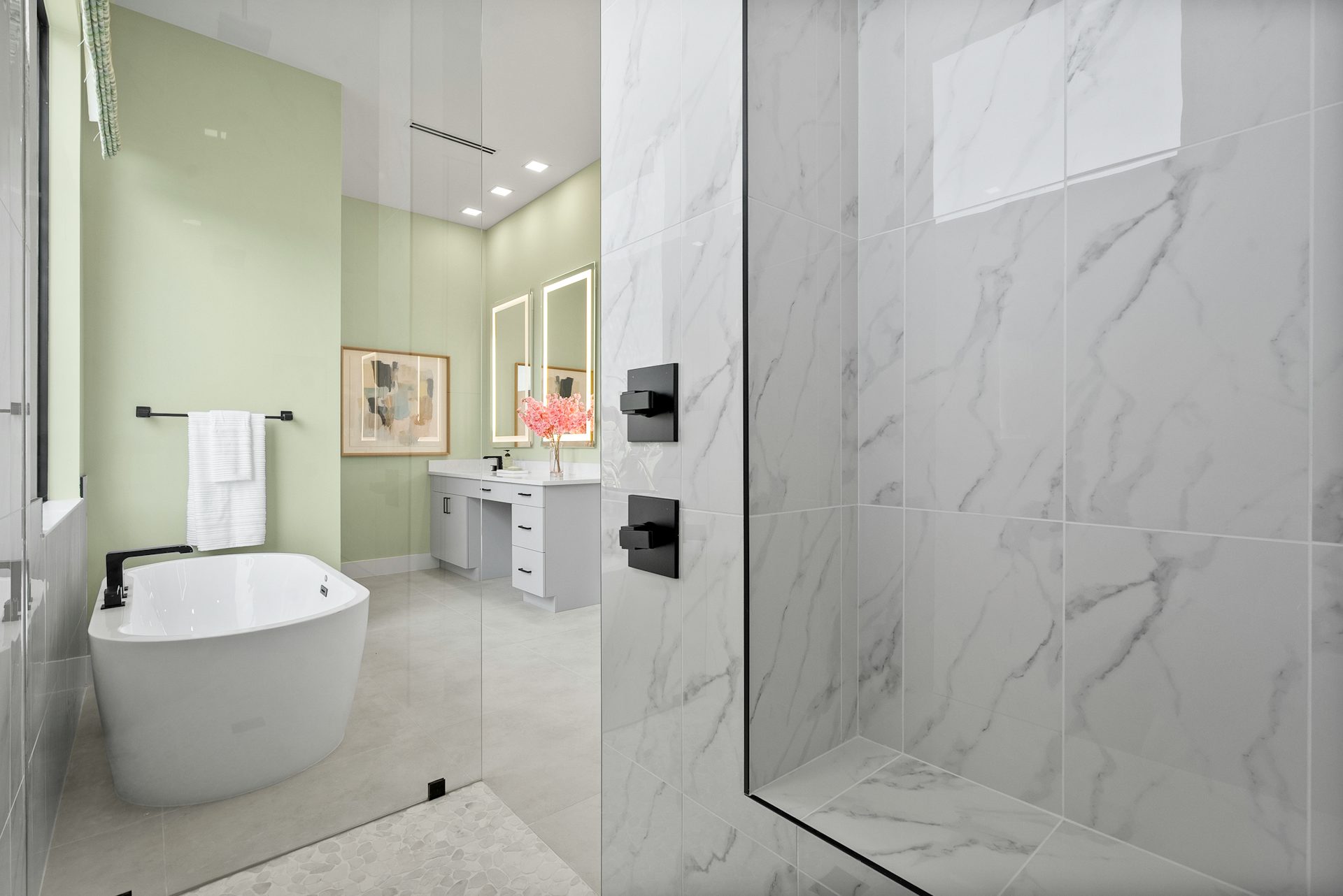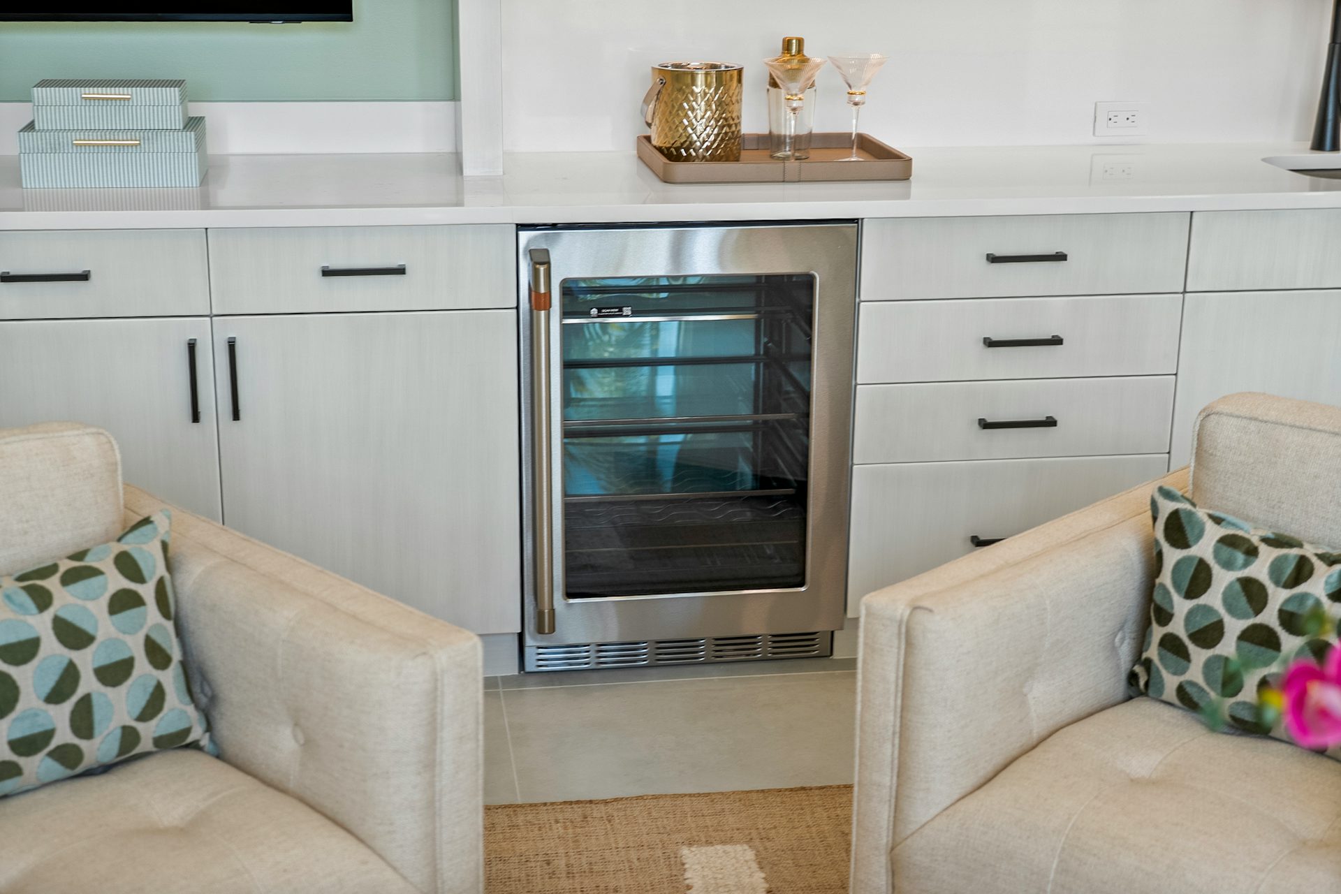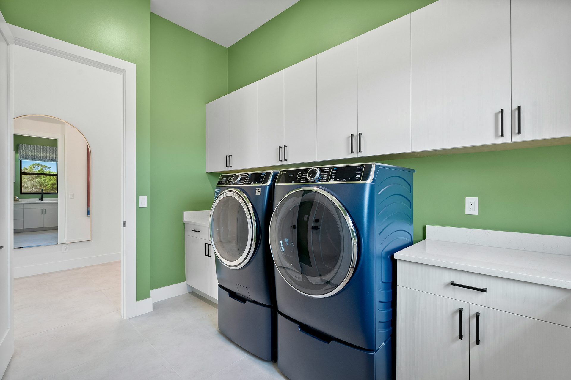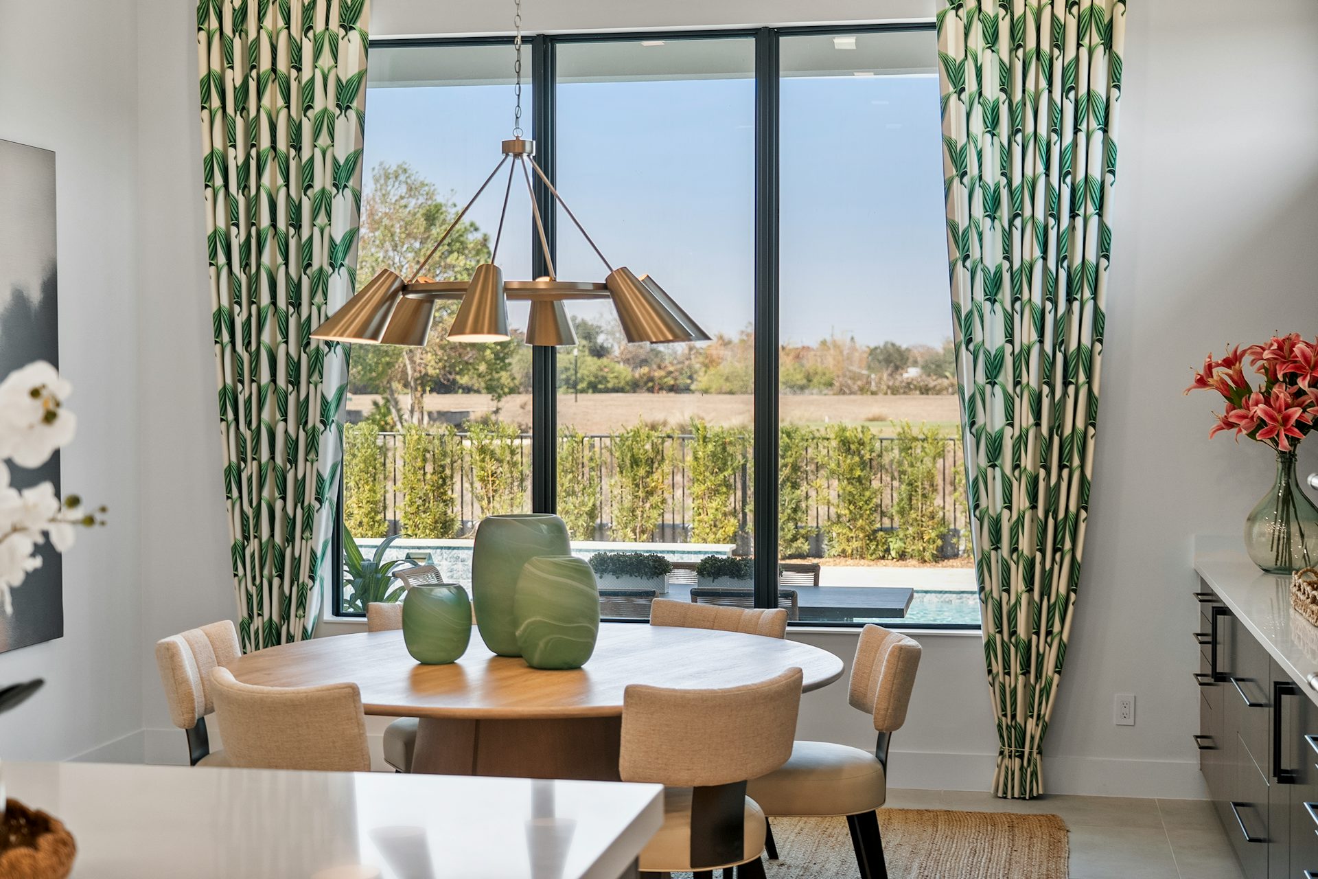 This coastal-contemporary semi-furnished home offers 3 bedrooms, 3.5 bathrooms and a 3-car split garage across 3,299 sq. ft. of air-conditioned space and 4,651 total sq. ft. The kitchen features a large center island with an extended breakfast bar, double-stacked white cabinetry, solid white quartz countertops, and premium Café appliances, including a 42" built-in refrigerator, wall oven/microwave combo, gas cooktop, and a hidden pantry. Soaring 12-ft. ceilings, a club room with wet bar and elegant 32x32 tile flooring throughout enhance the home's luxurious feel. The great room includes a built-in bar with upper and lower cabinetry and opens to a spacious lanai and pool deck with travertine pavers. The pool showcases a sun shelf and water feature.