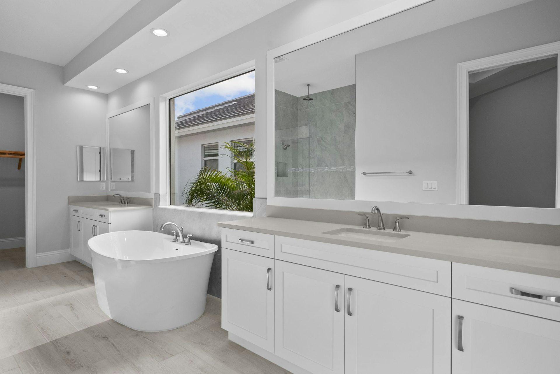 Adjacent to these areas is a club room perfect for pool table or media room, and just outside the great room the lanai overlooks a custom pool. The master suite offers ultimate privacy, featuring a vestibule leading from the bedroom to the bath, a sitting area, tray ceiling, and large windows complete the room. The master bath includes split vanities, a large shower, and two walk-in closets, adding to the luxurious feel. The secondary bedrooms each offer a private bath, and the home also includes a sizable two-car garage with built-in overhead storage.